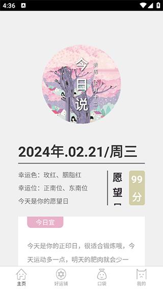 2、登录之后就进入到软件的【首页】了,这里会显示当前的正确时间,并且给出当日的运势分析。