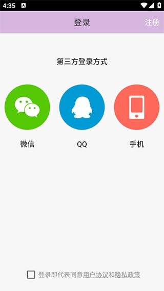 1、进入软件之后,我们需要先进行【登录】,这里支持微信、QQ、手机号三种方式登录,右上角还可以注册。