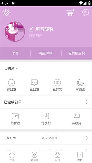 5、用户在【我的】页面还可以查看个人的基本信息,其中就包括了占卜记录、订单记录等。