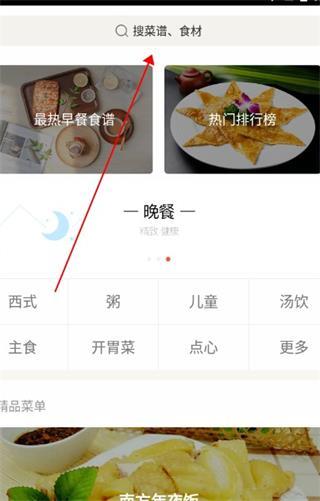 1、下载安装软件,打开到首页,想学做菜可以在首页上方的搜索栏输入菜谱名称;