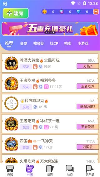 3、首页可直接进入房间,随机匹配或者是自己建房也行;