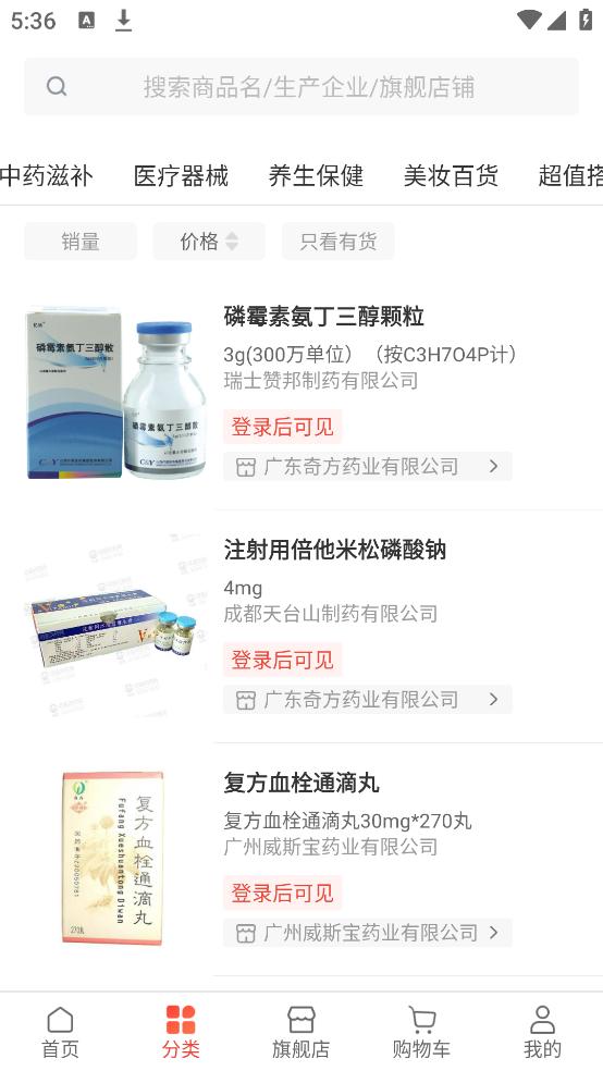 1、安装好软件之后,点击注册登录,找到自己想要购买的药品;