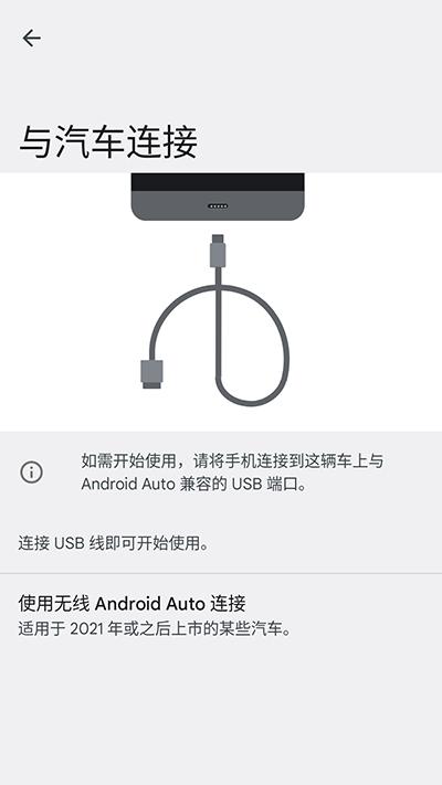 2、之后使用USB数据线插入车辆的USB端口,并将数据线的另一端插入安装有Android auto的手机