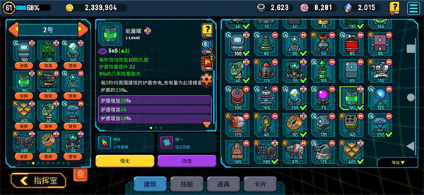 虽然个人喜欢用远古石板跟小号棱镜,小号棱镜是因为便宜,增加的资源相对遗物级别的芯片少很多。 远古石板也是,同样加300护盾 , 捕梦网比石板增加的资源多了15,由于能量罐并不是作为肉盾的存在, 捕梦网的无敌效果基本用不上。 子空间护盾加200护盾和20%护盾,我认为性价比没有另外两者高,所以并不会使用。