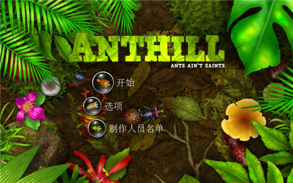 1、首先有意思的是游戏的世界观设定。玩家操控的主角是蚂蚁,四种蚂蚁,唯一的任务就是扞卫自己的蚁穴。扞卫的方式主要分三种:第一,主动攻击附近的敌人;第二,被迫防守,杀死过来侵犯的其他虫类;第三,把死掉的对手拖回蚁穴,充当食物。在游戏中,除了自己的四类蚂蚁之外,其他所有的昆虫都可以被认定为敌人。敌人和敌人之间也会发生战斗,这一点很有趣。有时候可以看着七星瓢虫和大甲虫互相攻击致死,而自己只需要派出工兵队伍,运回尸体,坐享其成。