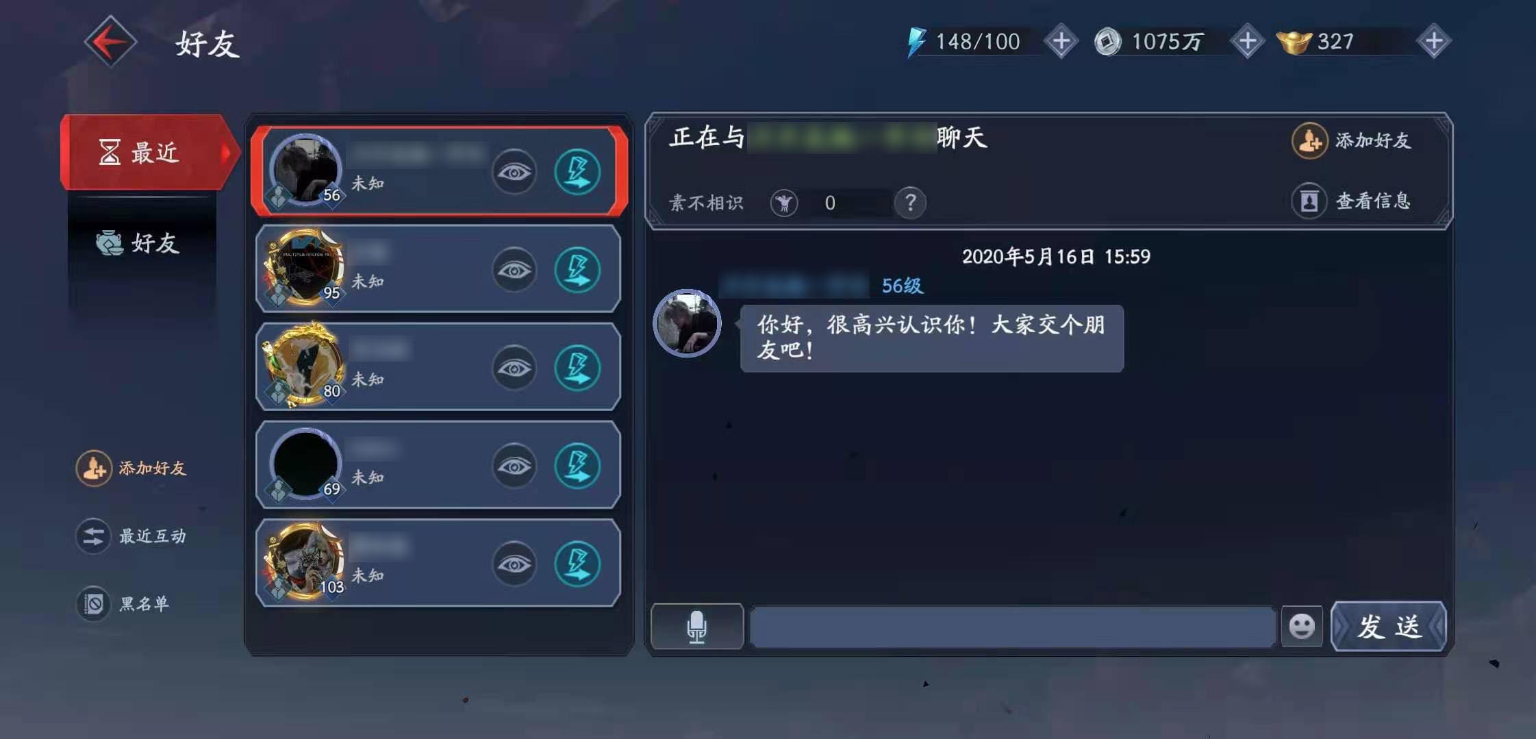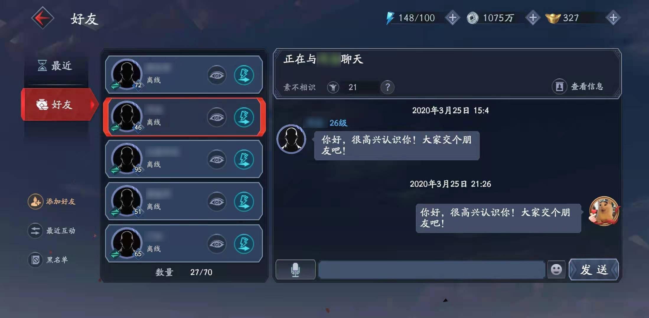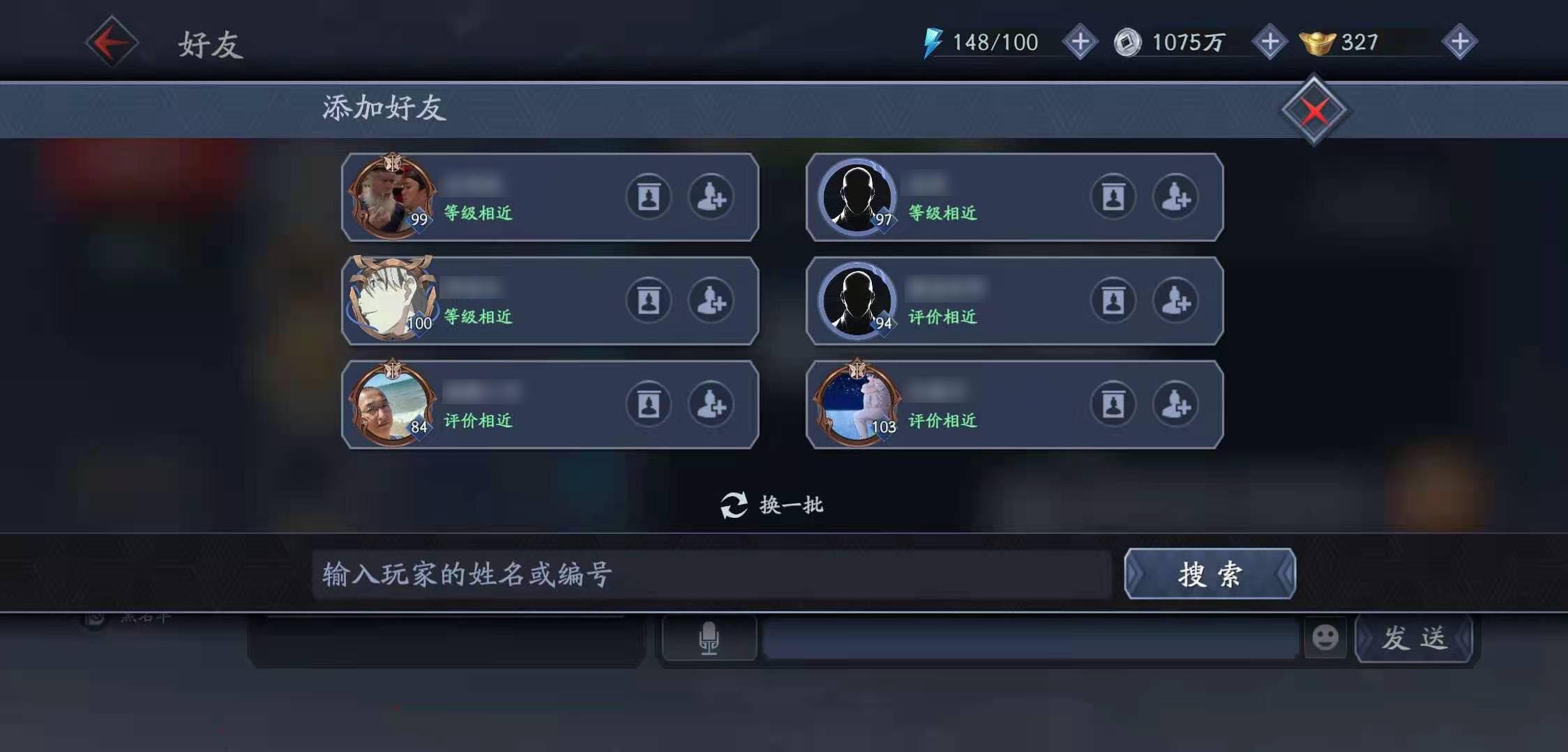 玩家可通过“好友”界面,添加和管理好友,并与好友进行互动。