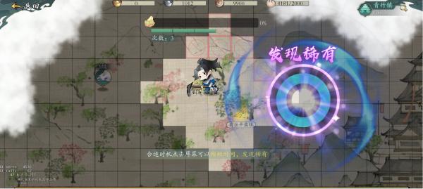 最上方进度条表示采集进度,三水潺进度将缓慢增加。绿块表示剩余操作次数,采集物品质越高,剩余操作次数越多。开始采集后光圈缩小,在光圈进入圆圈时点击屏幕,操作成功后可以缩短三水潺时间或者发现稀有物品。