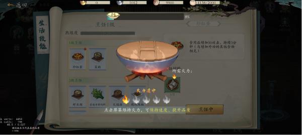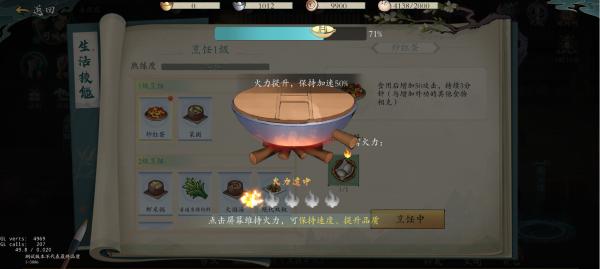 最上方进度条表示烹饪进度,在所需火力以外的火力中进度增加将变慢。点击屏幕维持火力,可保持烹饪速度、提升食物品质。