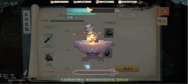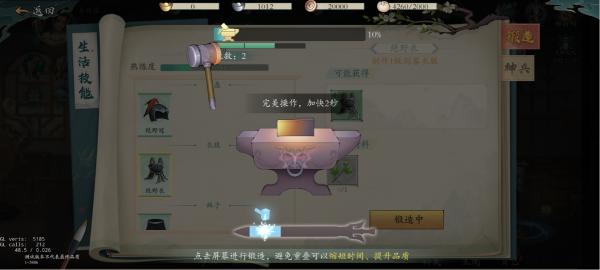 最上方进度条表示锻造进度,进度将缓慢增加。绿块表示剩余操作次数。点击屏幕进行锻造,锻造区域避免重叠可以大量缩短锻造时间、提升装备品质。