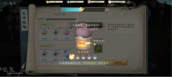 最上方进度条表示制药进度,在所需火力以外的火力中进度增加将变慢。点击屏幕维持火力,可保持制药速度、提升药品品质。