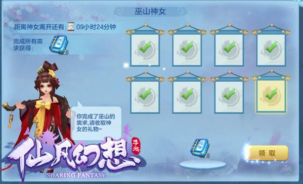1、每天可以在【日程】面板中找到【巫山神女】,点击参与后即可自动寻路到npc处接受任务。(任务需要在10个小时内完成)