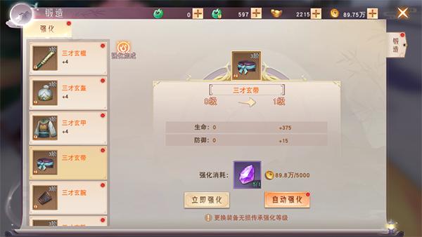 2.在装备界面中可对装备进行强化以提升装备的强度。