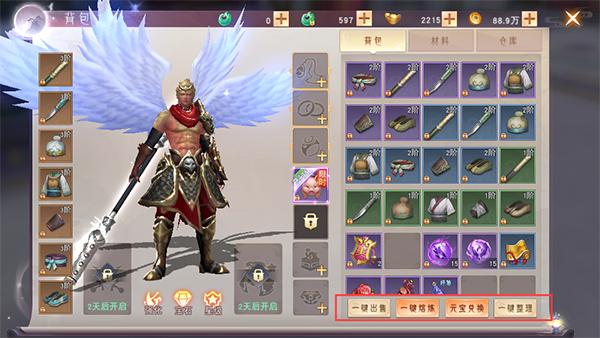 2.在背包中点击下方的按钮即可将背包中无用的装备进行清理