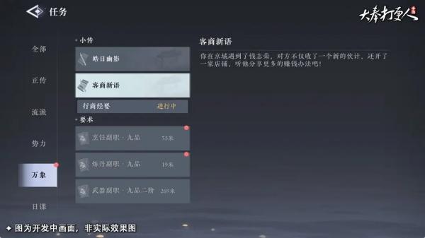少侠只需点击右上角菜单,找到并打开市场行情,即可随时随地看到新的价格情报,上至宝钞金融,下至酱米油茶,大奉物价行情悉数掌握。即便身处深山老林,也能实时洞悉市场情况,拒绝错过任何致富风口!