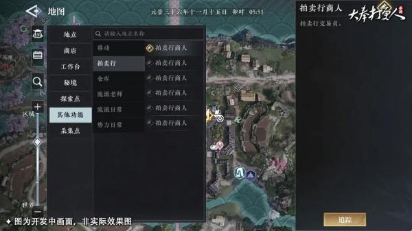 若您被京城的胜景迷了双眼,难识东南西北,可以打开世界地图,点击左方放大镜图标,即可找到拍卖行的位置,大奉自动导航持续为您服务!