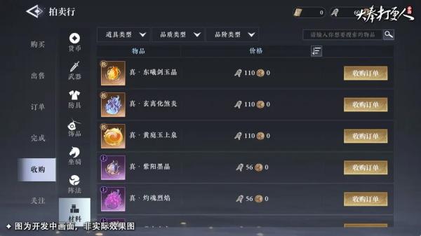 比如打开拍卖行页面,点击左方出售栏目,点击材料即可选择想拍卖的基础材料!