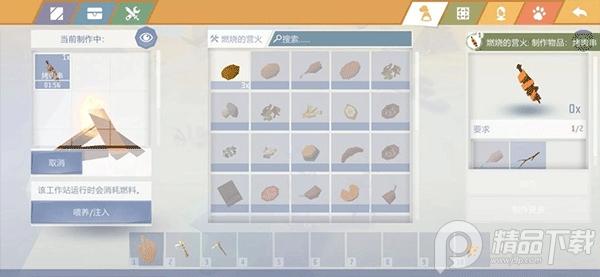 在出生岛上树木繁多,其中有很多果树,岛主们可以采摘果子进行充饥(靠近果树→采摘果实→打开背包→食用果实),但果实能减少的饥饿感比较有限,所以此时岛主们可以拿起制好的石斧,去捕猎一些兔子、野猪、螃蟹等生物来获取他们的肉类,然后回到营地将其放在篝火上即可制成美味的烤肉~