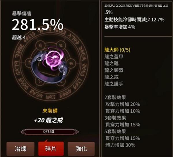 只能通过突袭店硬币来获得,它是仅用于突袭的装备,就是为了突袭而生的装备,穿透越高,失去的强度就越大。白龙套在突击不需要穿透的首领时会表现出强大的力量。3套B伤100%在突袭效率很高,推荐角色是raid的主要输出,例如该隐。另外,它的暴击很少,因此,如果不将白龙套和其他套搭配,你的暴击会异常的低,您必须增加暴击或带拥有团队暴击的角色例如:阿克娅/奥丁。
