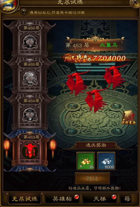 活动简介:通过试炼塔20、40、60、80、100层,可以获取额外奖励。