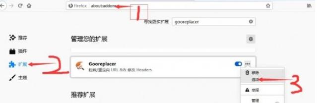 在回到第一步,在浏览器中输入(about:addons)按照图上步骤进项操作。