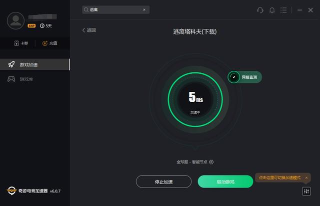 登录客户端可使用奇游加速器-“逃离塔可夫”分区进行加速登陆游戏,裸连会出现区服显示不全或者登陆不上等问题,奇游加速可以保证玩到所有区服,并且最近游戏加速和下载加速都限时免费,限免时间截止正月十五。