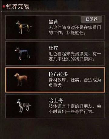 很多新手期在刚刚开始选择狗狗的时候就没有选择好,其实狗狗是有三种属性的,第一种是看门型的,也就是所谓的看门狗,另一种是搜索型的,也是在户外可以帮助玩家搜索物资的,最后一种就是负重型。在前期的时候建议选择搜索型的,不过如果大家前期选择了其他种类的狗狗也没有关系,后期花费点新币是可以更改宠物狗属性的,所以说在前期的时候就选择好,后期就不会浪费新币了嘛。