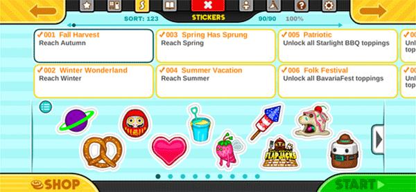 在玩游戏时完成各种任务和成就,为您的收藏赚取彩色贴纸。每位顾客都有一套三张最喜欢的贴纸:赢得全部三张,您将获得一套全新的服装来送给该顾客!