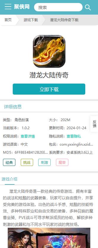 1.在聚侠站搜索栏中输入潜龙大陆传奇。