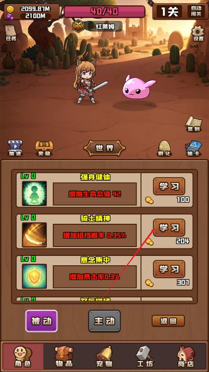 角色升级:通过挂机获得的金币升级玩家属性可以直接体会到属性的增强