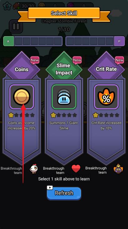1、进入游戏自动战斗然后升级选择技能