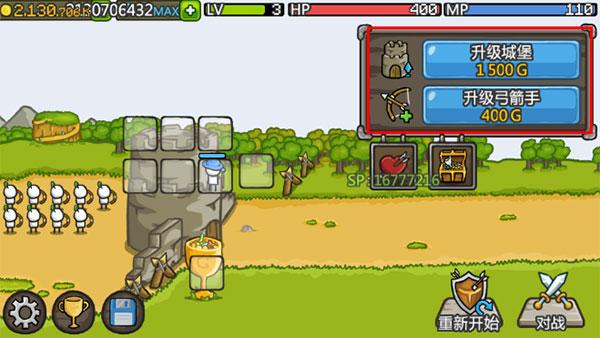 5、通过不断的升级城堡、训练士兵、建造塔楼就可以轻松通关了。