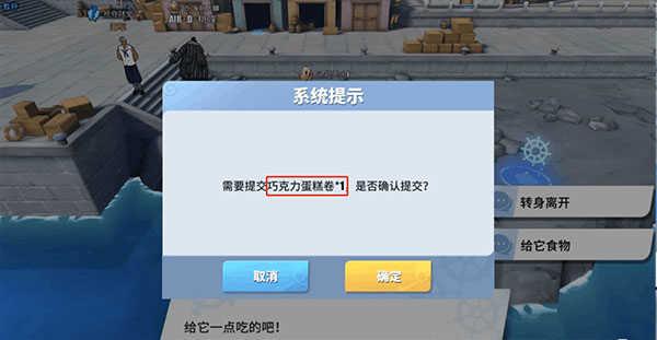 罗格镇的登陆点的旁边有一只海鸥,它想吃的是巧克力蛋糕卷,玩家在船舱的厨房给它弄一个就完成了。