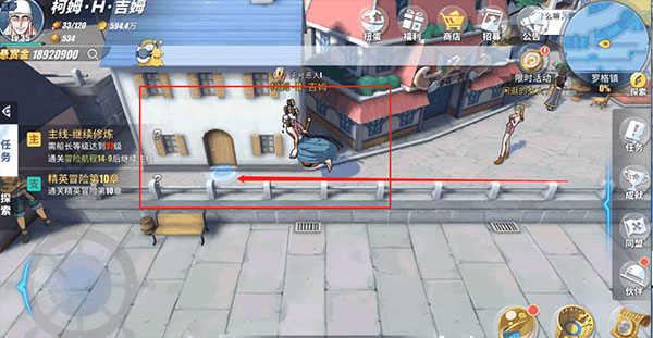 ⑨、在位于【港口区】仓库旁边的蓝色房屋内(下图位置),玩家通过探索告示牌可获得【藏宝图碎片*2】的奖励。