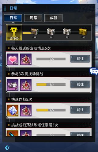 目前任务系统分为日常、周常、成就,完成相应条件后可领取大量奖励;