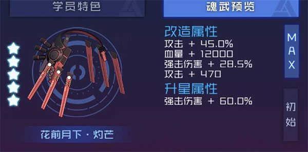 魂武系统对学员的帮助也很大,每个学员都有自己的专属魂武。魂武可以通过改造和升星提高自己的属性,比如说次元魔方爱丽丝的魂武是次元魔方神蚀。次元魔方神蚀的初始改造属性和升星属性只有百分之五的攻击力加成,而将次元魔方升到满级,就可以获得百分之四十五和百分之二十的攻击加成,还有各种血量、加伤等等的提升。魂武的升星需要一把相同的魂武,目前可以通过魂卡商店和竞技商店换取,相对来说魂卡商店要划算一点,5张魂卡就能换取一把魂武,也就是20张魂卡就能让魂武升星毕业。
