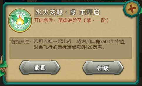 4、四娃与五娃羁绊潜能是水火交融—绿。