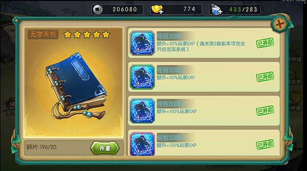 无字天书可以增加玩家额外经验值
