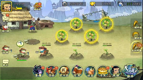 大家好,今天我们来聊一聊葫芦娃游戏中的农场系统。在我们完成单人第一章勇闯妖洞9即可开启农场,我们可以在空地上进行播种。