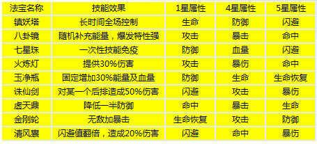 一、法宝属性列表