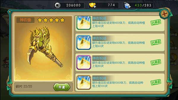 神农锄可以增加农场宠物体力和提高种植上线