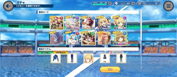 4、新手教学结束后的抽卡可以确定入手1名UR的海豚选手,并且可以无限重抽。刷到自己主推的UR与SSR角色+SSR~UR 的回忆(装备)以后,就能以更快乐的方式进行游玩了,