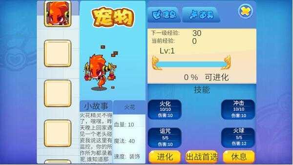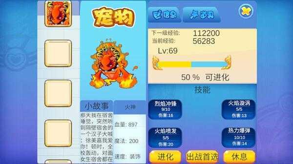 8、如果打不过其它宠物精灵,你还可以升级自己的宠物等级,然后进化和升级技能;
