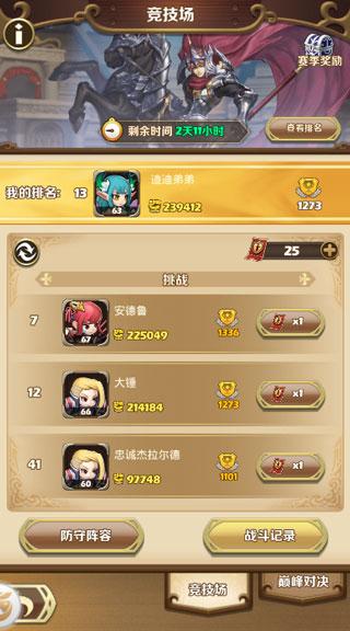 1、在竞技场玩家可以通过挑战其他玩家获得竞技场积分,赢得奖励;