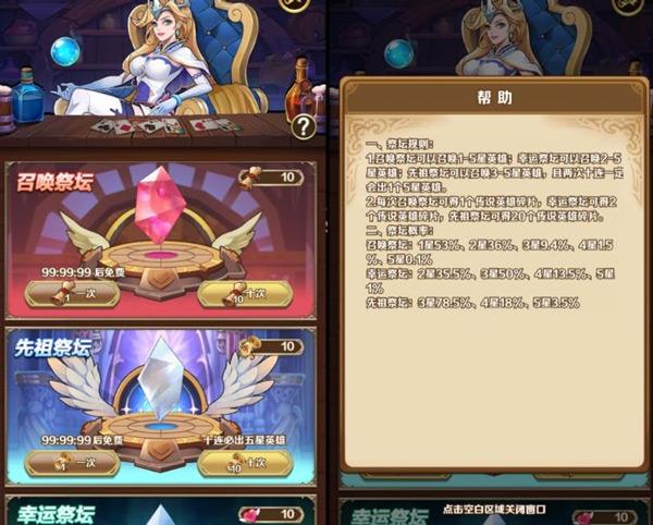ps2:看到这里一些微氪小伙伴可能会担心这些可以升10星的英雄必须充钱获取了。这里先给你辟谣下。游戏比较良心,抽卡都是可以抽到好东西的。十连必5星,是可以抽到好英雄的