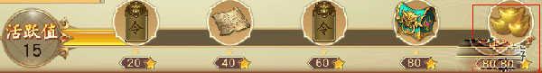 每天完成任务达到100活跃值,可以领取50元宝,积少成多。