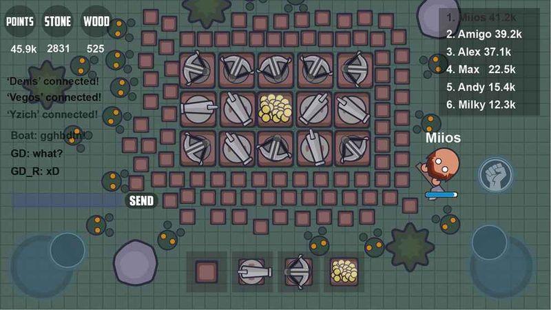 你可以建造城墙,建立防御塔,再建矿,以赚取更多的金子来改善。僵尸会周期性地攻击你,所以要用最大的时间和灵活性来提取资源和建造建筑物。当然你也可以创建一个团队生存下去